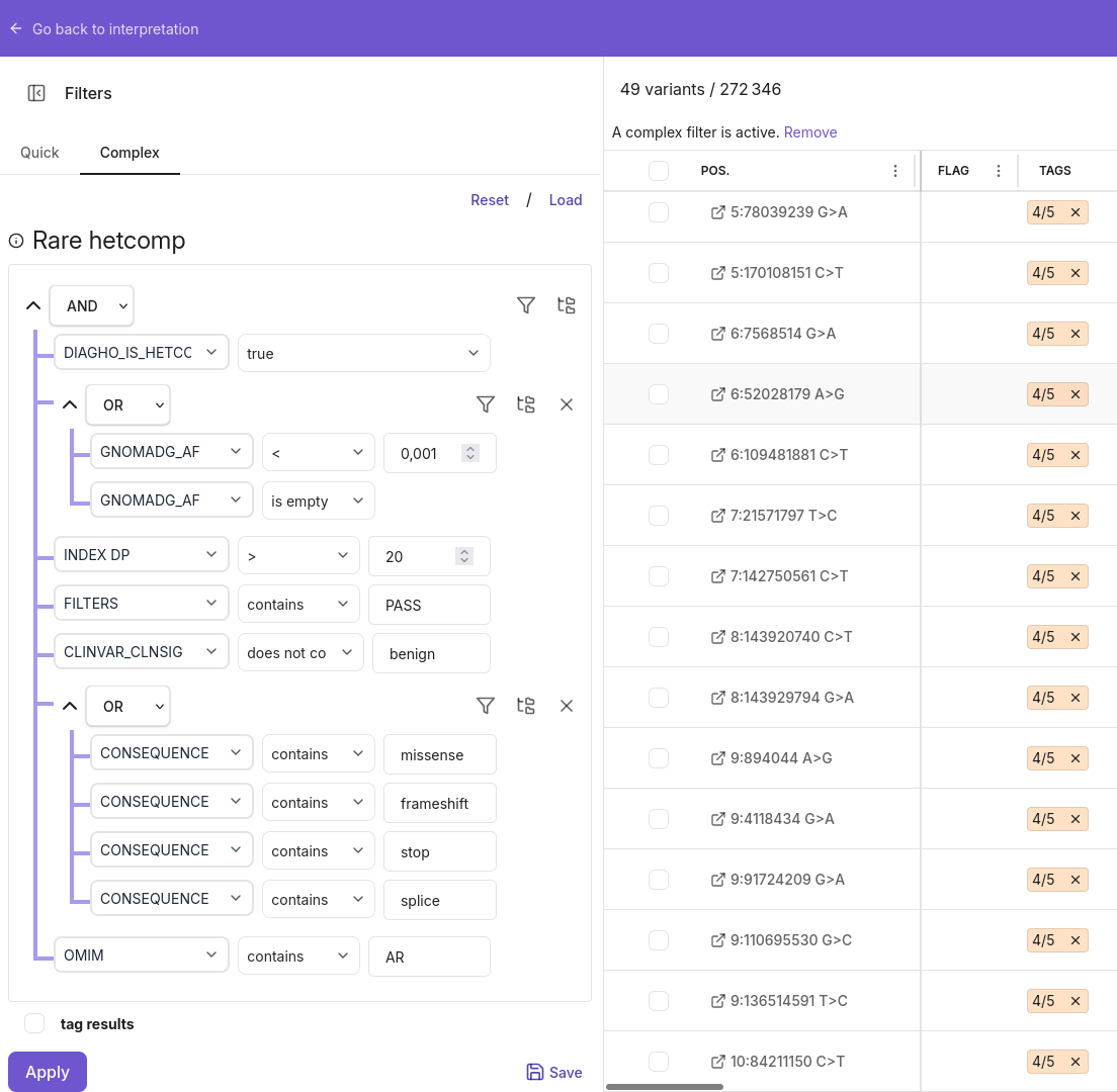 Diagho est un portail d’interprétation de données de séquençage haut débit permettant le traitement de données génétiques depuis un fichier de variations jusqu’à la génération de rapports illustrés et de comptes rendus d’analyses. Il permet l’annotation, le filtrage, la priorisation, la visualisation, l’interprétation des variations.